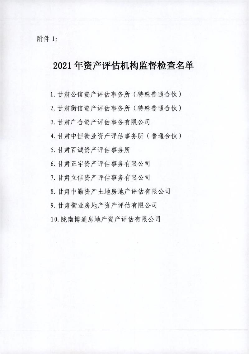 甘肃省财政厅关于开展2021年度资产评估机构监督检查工作的通知